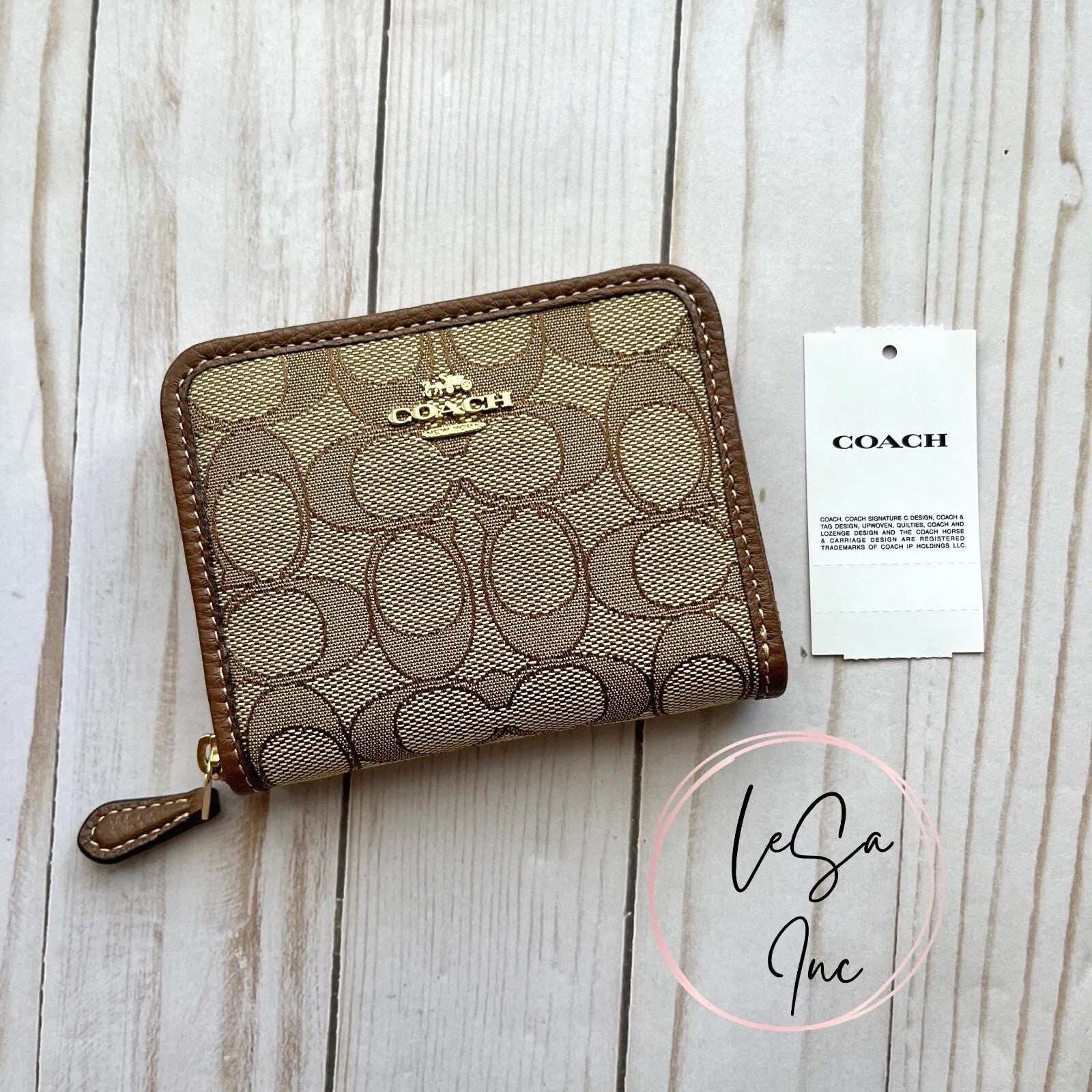 Cartera Coach Small Zip Around Wallet In Signature Jacquard - Marrón
