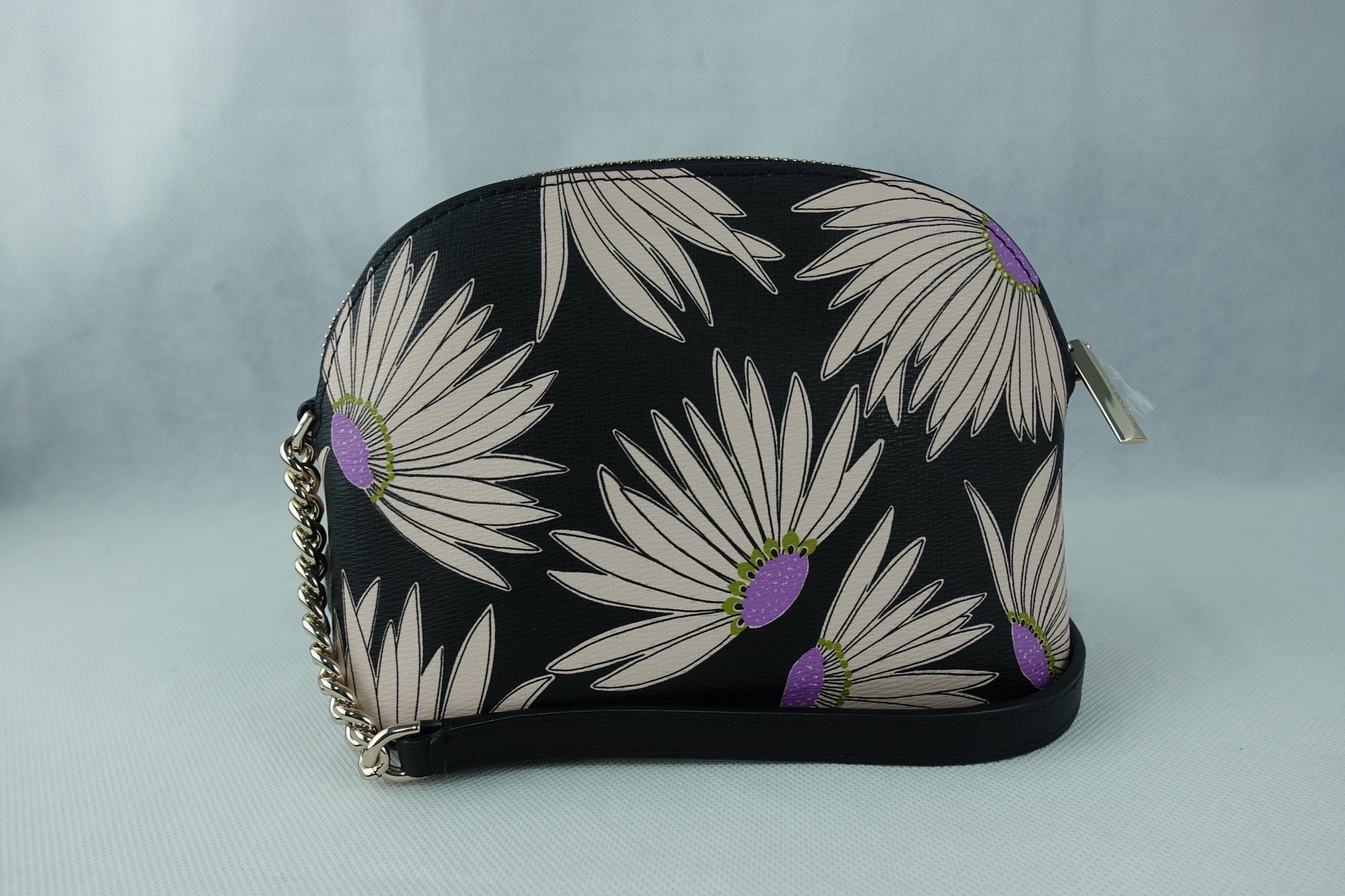 Nuestro bolso bandolera Spencer Small Dome adquiere un toque femenino en piel sintética estampada con caprichosas flores que caen. lo mantuvimos resistente a caídas y arañazos para que mantenga su aspecto lujoso.